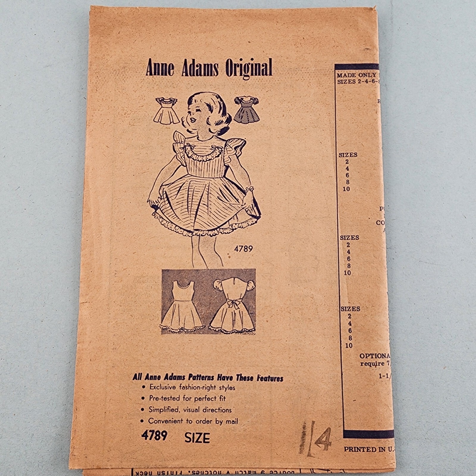 Anne Adams 4789 Vintage Sewing Pattern 1940 S Toddler Girls Fancy Frilly Dress Ebay